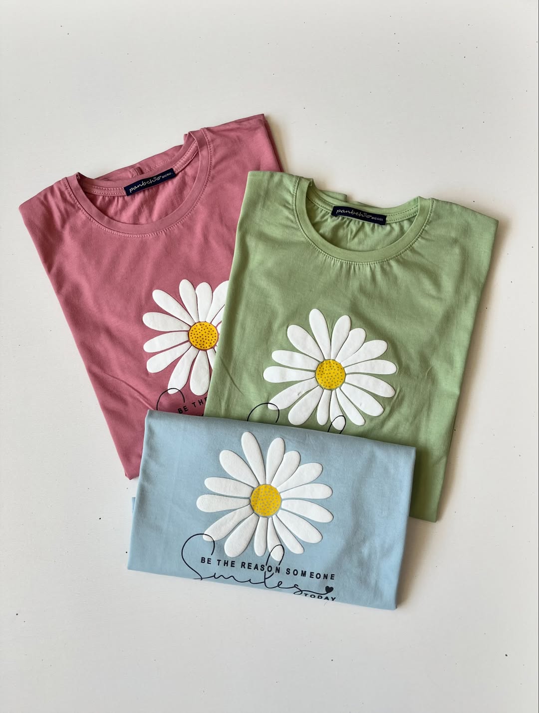 تیشرت نخ پنبه قواره دار مدل بابونه