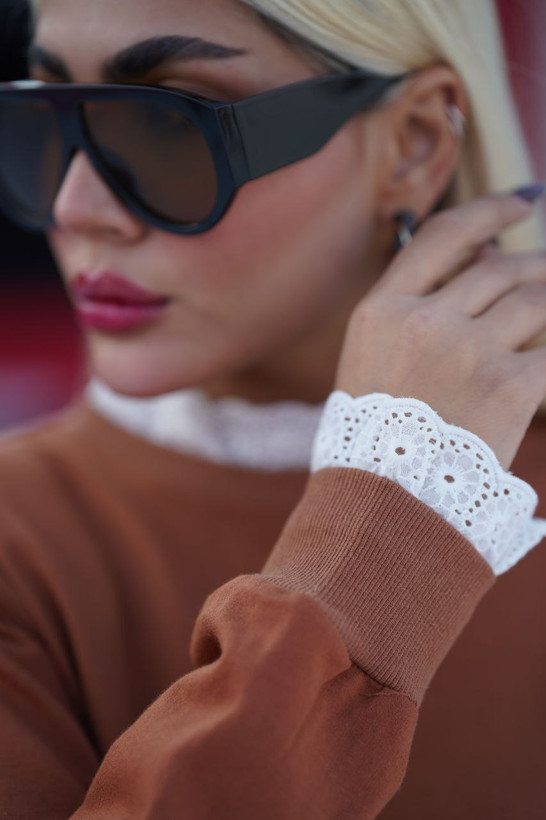 اندازه ها: قد بلوز ۷۰ یانت/سرشانه شانه ۱۵ سانت/قد آستین ۵۷ سانت/دور سینه از زیر آستین ۱۱۰ سانت