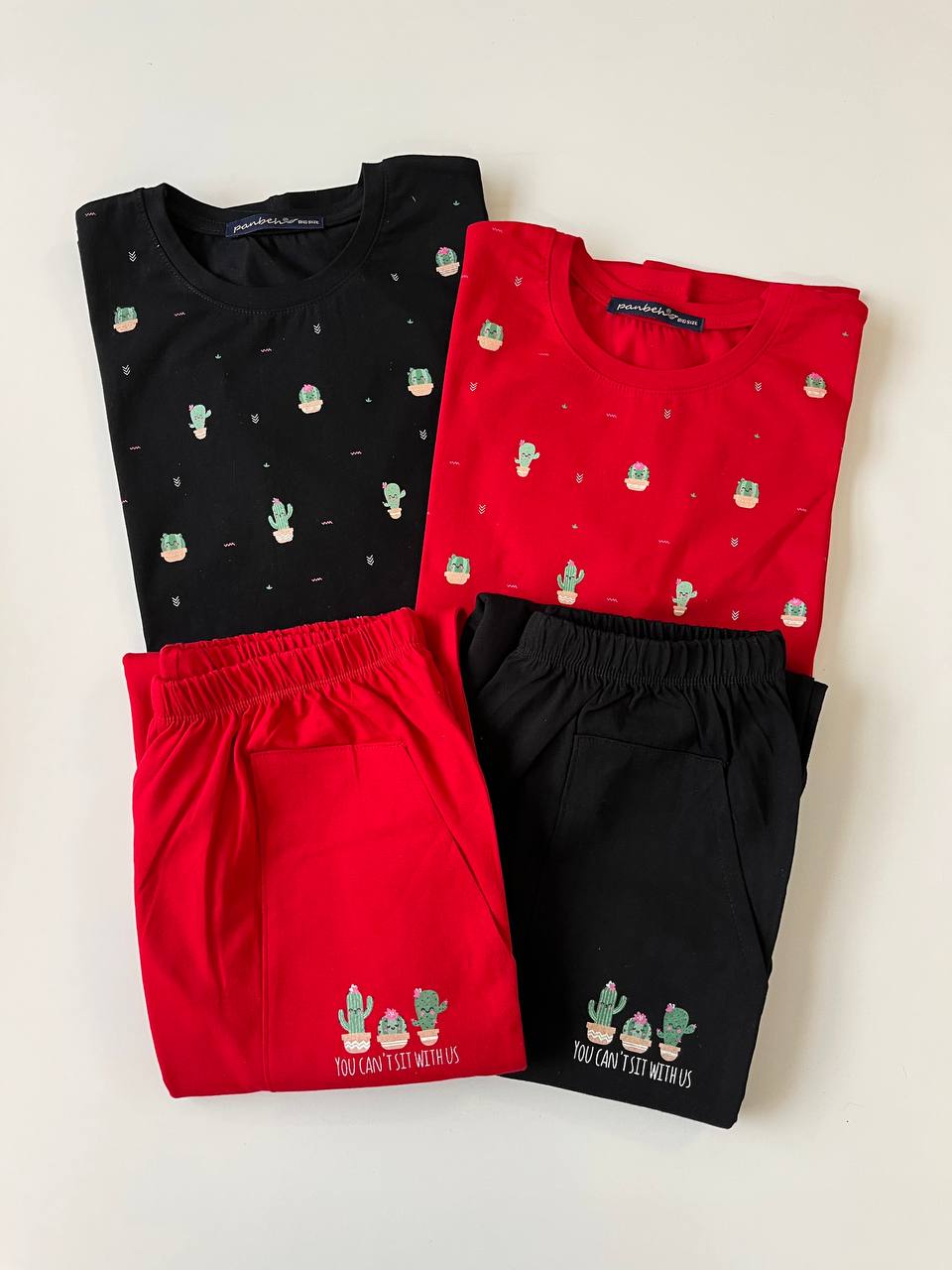 اندازه ها: 🧶قد تیشرت ۷۰🧶 قدآستین از یقه ۳۵🧶دور سینه در حالت عادی۱۱۰ و در حالت کشسانی تا ۱۳۰🧶قد شلوار ۱۰۰🧶دور یک ران ۶۲🧶دور کمر ۷۰ تا ۱۲۰